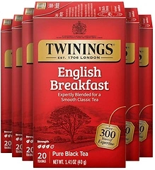 Twinings English Breakfast Black Tea, Individually Wrapped, 20 Count (Pack of 6)