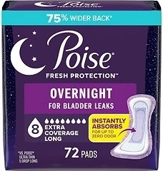 Poise Overnight Incontinence & Postpartum Pads, 72 Count (2 Packs of 36)
