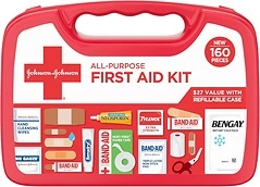 Johnson & Johnson Portable Compact First Aid Kit, 160 Pieces