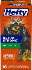 Hefty Ultra Strong Lawn & Leaf Trash Bags, Unscented, 39 Gallon, 16 Count