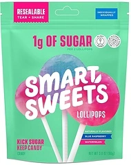 SmartSweets Lollipops, 3oz, Blue Raspberry & Watermelon, Low Sugar (1g), Gluten - Free
