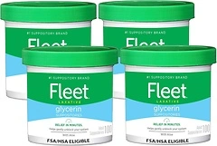 Fleet Glycerin Suppositories for Constipation Relief, 100 Count Jar, Pack of 4