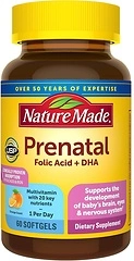 Nature Made Prenatal Vitamins with Folic Acid + DHA, 60 Softgels, 60 Day Supply
