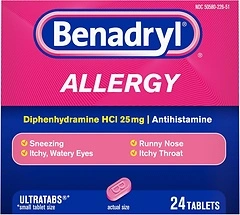 Benadryl Ultratabs Allergy Relief, 25 mg Diphenhydramine HCl, 24 Tablets