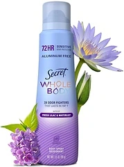 Secret Whole Body Deodorant Spray for Women, Lilac & Waterlily, 3.5 oz